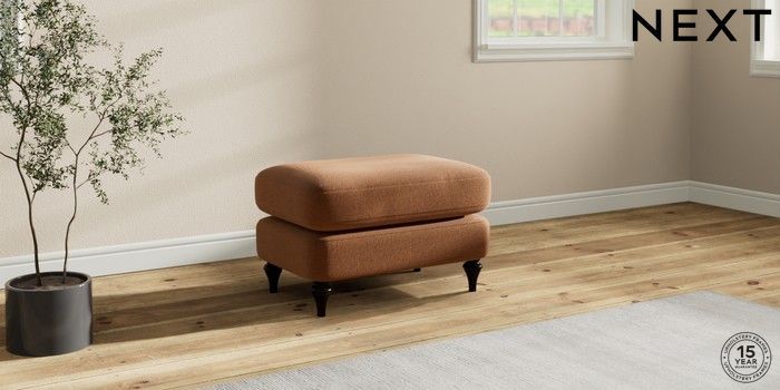 7.0.3 Buy Sadie Deep Relaxed Sit Footstool Ripple Chenille Mid Rust Brown High Slim Turned - Dark from the Next UK online shop Click here to use our accessible website
