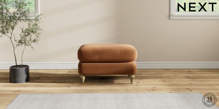 6.12.1 Buy Sadie Deep Relaxed Sit Footstool Ripple Chenille Mid Rust Brown High Slim Turned - Light from the Next UK online shop Click here to use our accessible website