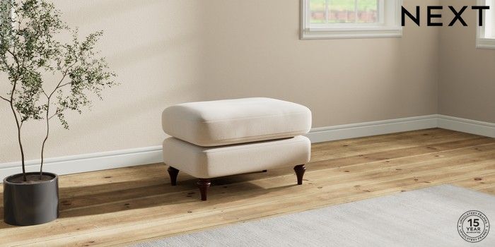 7.0.3 Buy Sadie Deep Relaxed Sit Footstool Studio Chenille Oyster High Slim Turned - Dark Brown from the Next UK online shop Click here to use our accessible website
