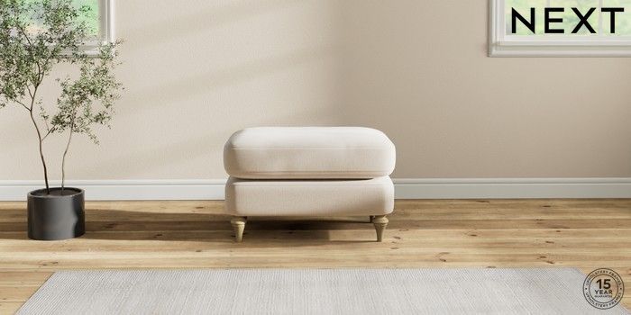 6.12.1 Buy Sadie Deep Relaxed Sit Footstool Studio Chenille Oyster High Slim Turned - Light from the Next UK online shop Click here to use our accessible website
