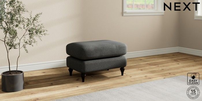 7.0.3 Buy Sadie Deep Relaxed Sit Footstool Tweedy Blend Easy Clean Charcoal Grey High Slim Turned - Dark from the Next UK online shop Click here to use our accessible website