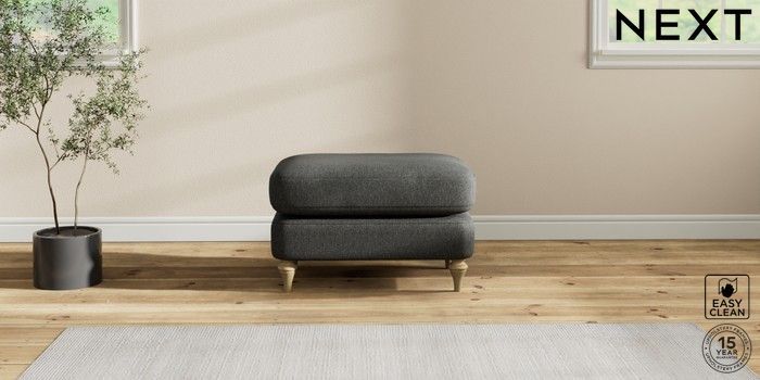 6.12.1 Buy Sadie Deep Relaxed Sit Footstool Tweedy Blend Easy Clean Charcoal Grey High Slim Turned - Light from the Next UK online shop Click here to use our accessible website
