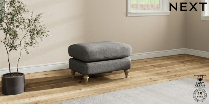 7.0.3 Buy Sadie Deep Relaxed Sit Footstool Tweedy Blend Easy Clean Dark Grey High Slim Turned - Light from the Next UK online shop Click here to use our accessible website