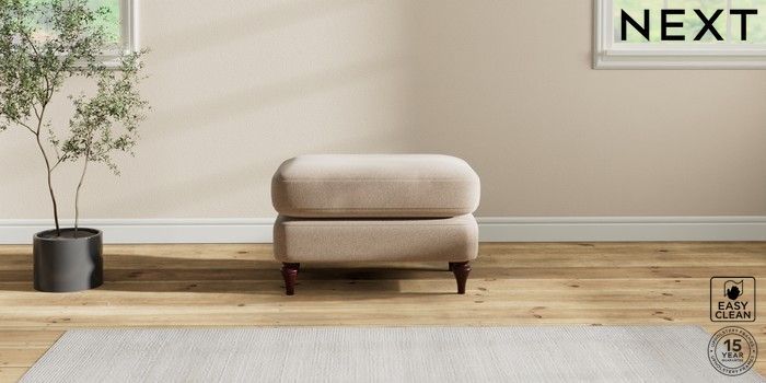 6.12.1 Buy Sadie Deep Relaxed Sit Footstool Tweedy Blend Easy Clean Light Dove Natural High Slim Turned - Dark Brown from the Next UK online shop Click here to use our accessible website