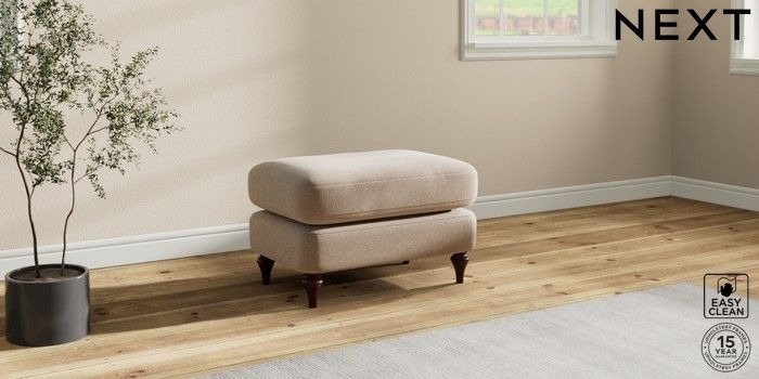 7.0.3 Buy Sadie Deep Relaxed Sit Footstool Tweedy Blend Easy Clean Light Dove Natural High Slim Turned - Dark Brown from the Next UK online shop Click here to use our accessible website