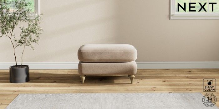 6.12.1 Buy Sadie Deep Relaxed Sit Footstool Tweedy Blend Easy Clean Light Dove Natural High Slim Turned - Light from the Next UK online shop Click here to use our accessible website