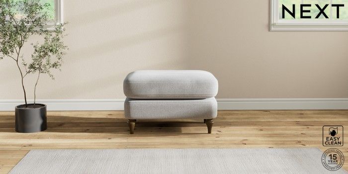 6.12.1 Buy Sadie Deep Relaxed Sit Footstool Tweedy Blend Easy Clean Light Silver Grey High Slim Turned - Mid from the Next UK online shop Click here to use our accessible website