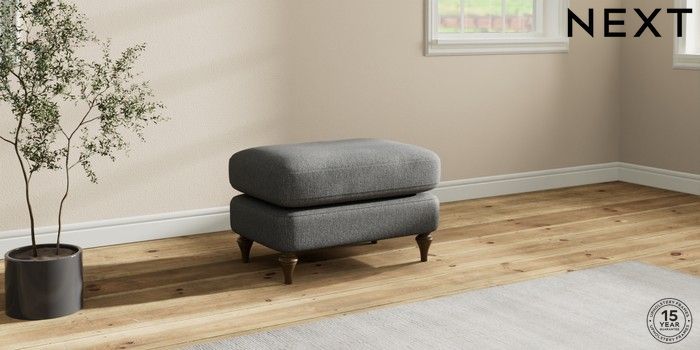 7.0.3 Buy Sadie Deep Relaxed Sit Footstool Tweedy Chenille Dark Grey High Slim Turned - Mid from the Next UK online shop Click here to use our accessible website