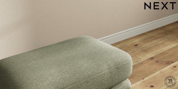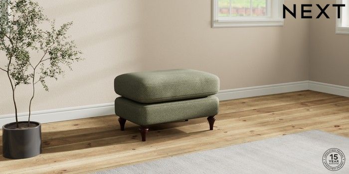 7.0.3 Buy Sadie Deep Relaxed Sit Footstool Tweedy Chenille Mid Moss Green High Slim Turned - Dark Brown from the Next UK online shop Click here to use our accessible website
