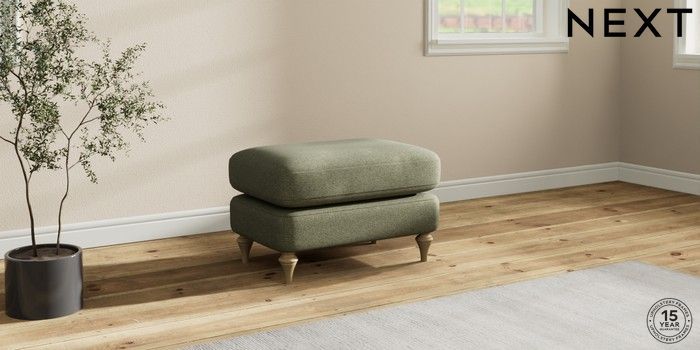 7.0.3 Buy Sadie Deep Relaxed Sit Footstool Tweedy Chenille Mid Moss Green High Slim Turned - Light from the Next UK online shop Click here to use our accessible website