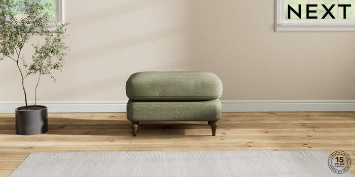 6.12.1 Buy Sadie Deep Relaxed Sit Footstool Tweedy Chenille Mid Moss Green High Slim Turned - Mid from the Next UK online shop Click here to use our accessible website
