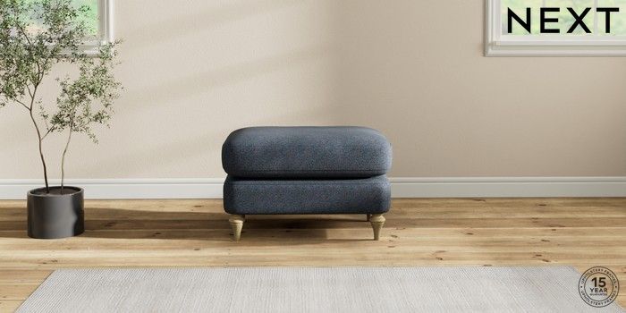6.12.1 Buy Sadie Deep Relaxed Sit Footstool Tweedy Chenille Navy Blue High Slim Turned - Light from the Next UK online shop Click here to use our accessible website