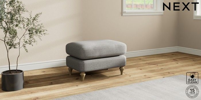 7.0.3 Buy Sadie Deep Relaxed Sit Footstool Woven Chenille Easy Clean Light Grey High Slim Turned - Light from the Next UK online shop Click here to use our accessible website