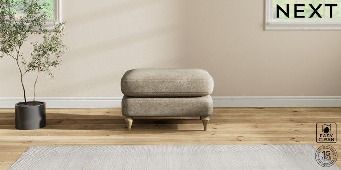 6.12.1 Buy Sadie Deep Relaxed Sit Footstool Woven Chenille Easy Clean Mid Natural High Slim Turned - Light from the Next UK online shop Click here to use our accessible website