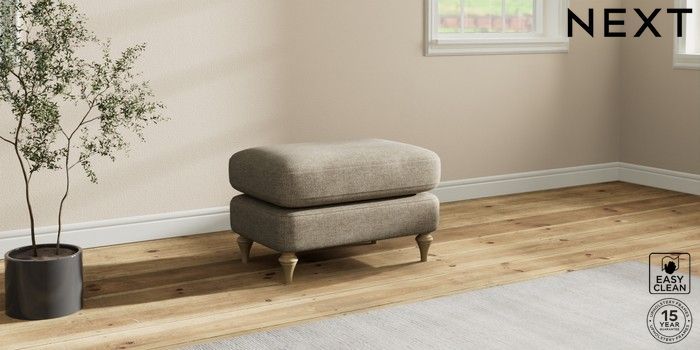 7.0.3 Buy Sadie Deep Relaxed Sit Footstool Woven Chenille Easy Clean Mid Natural High Slim Turned - Light from the Next UK online shop Click here to use our accessible website
