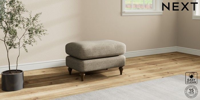 7.0.3 Buy Sadie Deep Relaxed Sit Footstool Woven Chenille Easy Clean Mid Natural High Slim Turned - Mid from the Next UK online shop Click here to use our accessible website