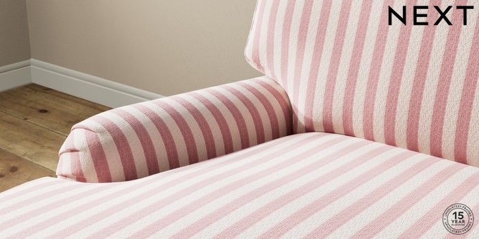 7.0.3 Buy Sadie Deep Relaxed Sit Medium Sofa Chaise - Left Hand Bold Chenille Stripe Dark Pink High Slim Turned - Dark Brown from the Next UK online shop Click here to use our accessible website