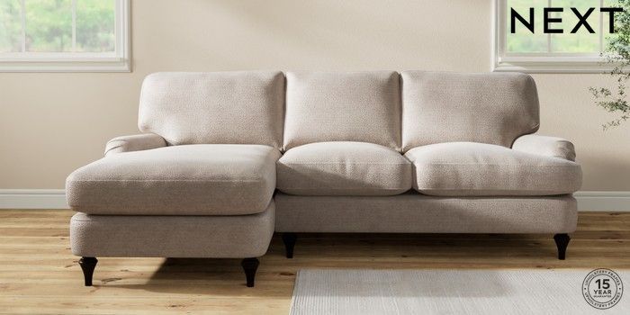 7.0.3 Buy Sadie Deep Relaxed Sit Medium Sofa Chaise - Left Hand Boucle Chenille Light Natural High Slim Turned - Dark from the Next UK online shop Click here to use our accessible website