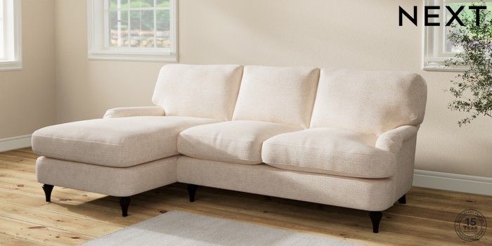 6.12.1 Buy Sadie Deep Relaxed Sit Medium Sofa Chaise - Left Hand Boucle Chenille Oyster High Slim Turned - Dark from the Next UK online shop Click here to use our accessible website