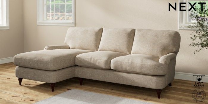 6.12.1 Buy Sadie Deep Relaxed Sit Medium Sofa Chaise - Left Hand Boucle Weave Easy Clean Dark Natural High Slim Turned - Dark Brown from the Next UK online shop Click here to use our accessible website