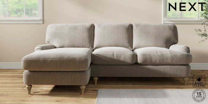 7.0.3 Buy Sadie Deep Relaxed Sit Medium Sofa Chaise - Left Hand Chunky Boucle Easy Clean Dove High Slim Turned - Light from the Next UK online shop Click here to use our accessible website
