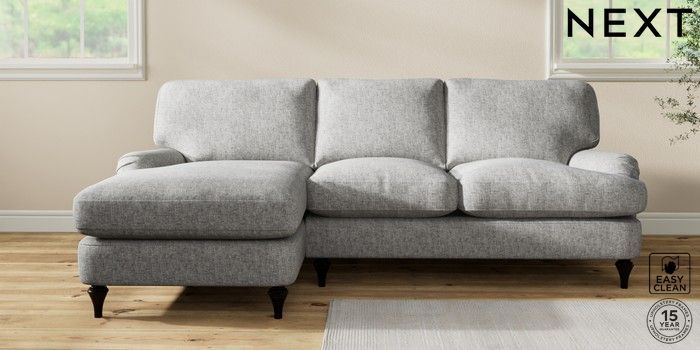 7.0.3 Buy Sadie Deep Relaxed Sit Medium Sofa Chaise - Left Hand Chunky Boucle Easy Clean Light Grey High Slim Turned - Dark from the Next UK online shop Click here to use our accessible website