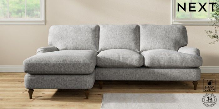 7.0.3 Buy Sadie Deep Relaxed Sit Medium Sofa Chaise - Left Hand Chunky Boucle Easy Clean Light Grey High Slim Turned - Mid from the Next UK online shop Click here to use our accessible website