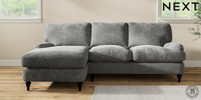 7.0.3 Buy Sadie Deep Relaxed Sit Medium Sofa Chaise - Left Hand Chunky Chenille Dark Grey High Slim Turned - Dark from the Next UK online shop Click here to use our accessible website