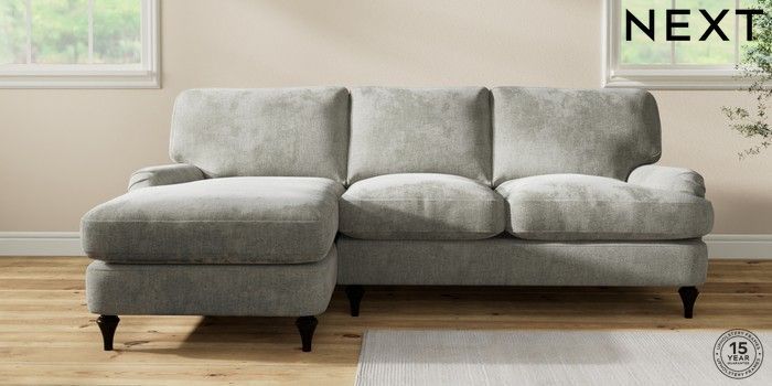 7.0.3 Buy Sadie Deep Relaxed Sit Medium Sofa Chaise - Left Hand Chunky Chenille Light Grey High Slim Turned - Dark from the Next UK online shop Click here to use our accessible website