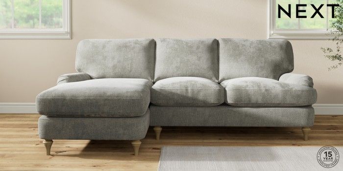 7.0.3 Buy Sadie Deep Relaxed Sit Medium Sofa Chaise - Left Hand Chunky Chenille Light Grey High Slim Turned - Light from the Next UK online shop Click here to use our accessible website