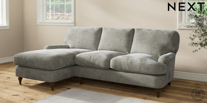 6.12.1 Buy Sadie Deep Relaxed Sit Medium Sofa Chaise - Left Hand Chunky Chenille Light Grey High Slim Turned - Mid from the Next UK online shop Click here to use our accessible website