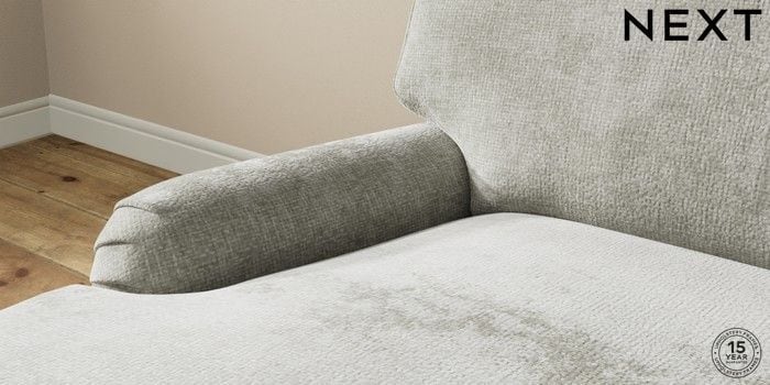 7.0.3 Buy Sadie Deep Relaxed Sit Medium Sofa Chaise - Left Hand Chunky Chenille Light Grey High Slim Turned - Mid from the Next UK online shop Click here to use our accessible website