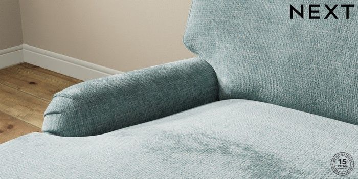 7.0.3 Buy Sadie Deep Relaxed Sit Medium Sofa Chaise - Left Hand Chunky Chenille Light Teal Green High Slim Turned - Dark from the Next UK online shop Click here to use our accessible website