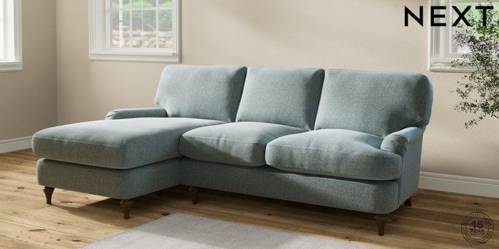 6.12.1 Buy Sadie Deep Relaxed Sit Medium Sofa Chaise - Left Hand Chunky Marl Mid Blue High Slim Turned - Mid from the Next UK online shop Click here to use our accessible website