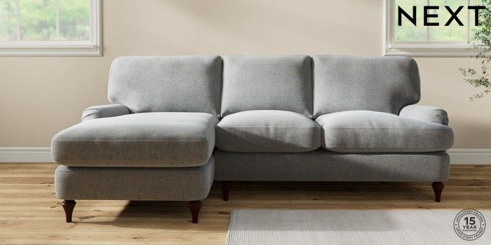 7.0.3 Buy Sadie Deep Relaxed Sit Medium Sofa Chaise - Left Hand Chunky Marl Mid Grey High Slim Turned - Dark Brown from the Next UK online shop Click here to use our accessible website