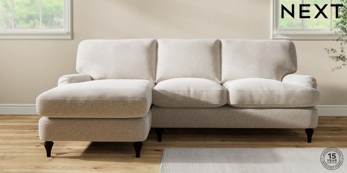 7.0.3 Buy Sadie Deep Relaxed Sit Medium Sofa Chaise - Left Hand Chunky Marl Oyster High Slim Turned - Dark from the Next UK online shop Click here to use our accessible website