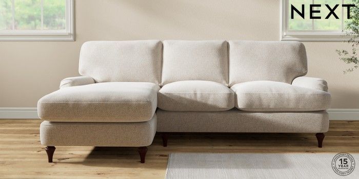 7.0.3 Buy Sadie Deep Relaxed Sit Medium Sofa Chaise - Left Hand Chunky Marl Oyster High Slim Turned - Dark Brown from the Next UK online shop Click here to use our accessible website