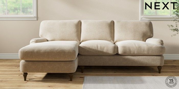 7.0.3 Buy Sadie Deep Relaxed Sit Medium Sofa Chaise - Left Hand Chunky Weave Cream High Slim Turned - Mid from the Next UK online shop Click here to use our accessible website