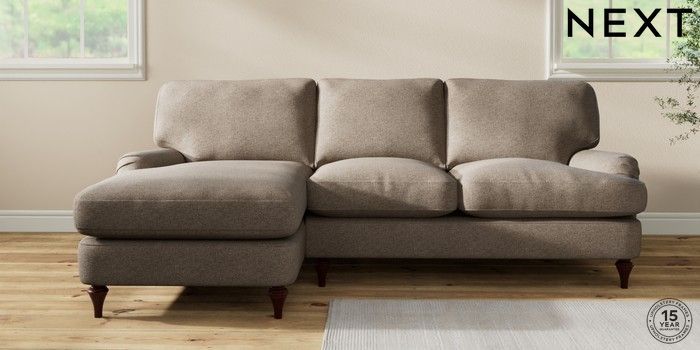 7.0.3 Buy Sadie Deep Relaxed Sit Medium Sofa Chaise - Left Hand Chunky Weave Dark Natural High Slim Turned - Dark Brown from the Next UK online shop Click here to use our accessible website