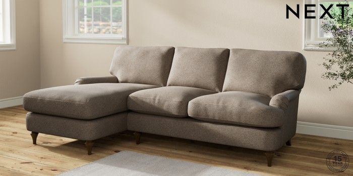 6.12.1 Buy Sadie Deep Relaxed Sit Medium Sofa Chaise - Left Hand Chunky Weave Dark Natural High Slim Turned - Mid from the Next UK online shop Click here to use our accessible website