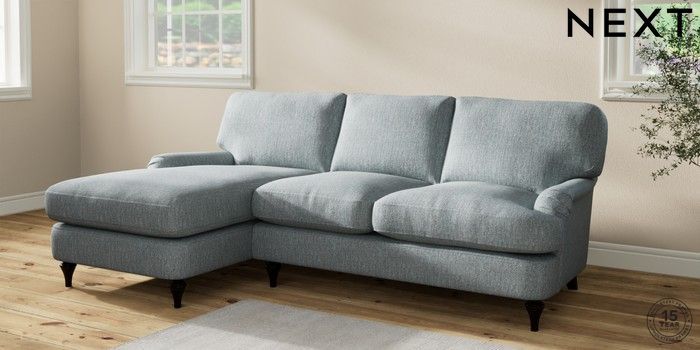 6.12.1 Buy Sadie Deep Relaxed Sit Medium Sofa Chaise - Left Hand Chunky Weave Mid Blue High Slim Turned - Dark from the Next UK online shop Click here to use our accessible website