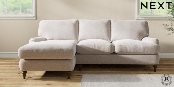 7.0.3 Buy Sadie Deep Relaxed Sit Medium Sofa Chaise - Left Hand Cotswold Chenille Oyster High Slim Turned - Mid from the Next UK online shop Click here to use our accessible website