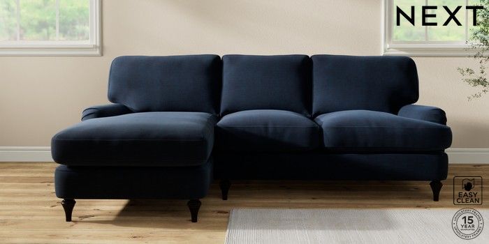 7.0.3 Buy Sadie Deep Relaxed Sit Medium Sofa Chaise - Left Hand Fine Chenille Easy Clean Dark Navy Blue High Slim Turned - Dark from the Next UK online shop Click here to use our accessible website