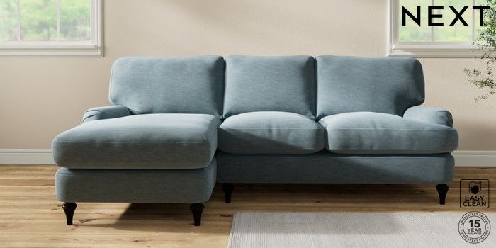 7.0.3 Buy Sadie Deep Relaxed Sit Medium Sofa Chaise - Left Hand Fine Chenille Easy Clean Mid Blue High Slim Turned - Dark from the Next UK online shop Click here to use our accessible website