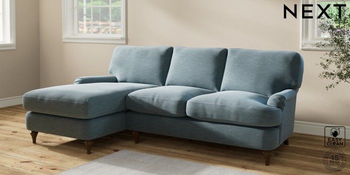 6.12.1 Buy Sadie Deep Relaxed Sit Medium Sofa Chaise - Left Hand Fine Chenille Easy Clean Mid Blue High Slim Turned - Mid from the Next UK online shop Click here to use our accessible website