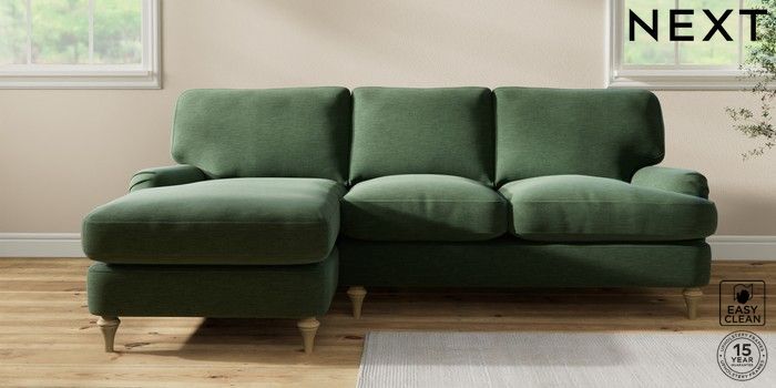 7.0.3 Buy Sadie Deep Relaxed Sit Medium Sofa Chaise - Left Hand Fine Chenille Easy Clean Mid Khaki Green High Slim Turned - Light from the Next UK online shop Click here to use our accessible website