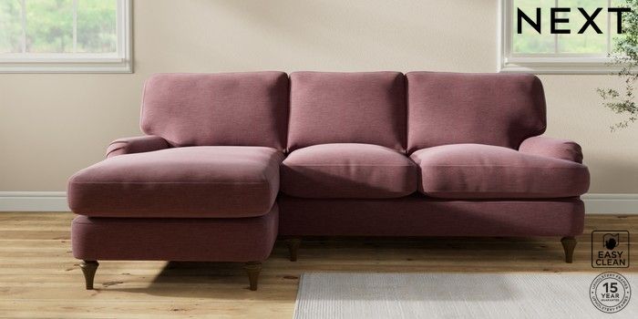 7.0.3 Buy Sadie Deep Relaxed Sit Medium Sofa Chaise - Left Hand Fine Chenille Easy Clean Mid Mulberry Purple High Slim Turned - Mid from the Next UK online shop Click here to use our accessible website