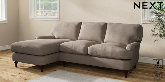 6.12.1 Buy Sadie Deep Relaxed Sit Medium Sofa Chaise - Left Hand Fine Chenille Easy Clean Mid Taupe Brown High Slim Turned - Dark Brown from the Next UK online shop Click here to use our accessible website
