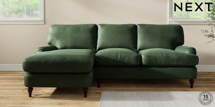 7.0.3 Buy Sadie Deep Relaxed Sit Medium Sofa Chaise - Left Hand Luxe Chenille Dark Green High Slim Turned - Dark Brown from the Next UK online shop Click here to use our accessible website