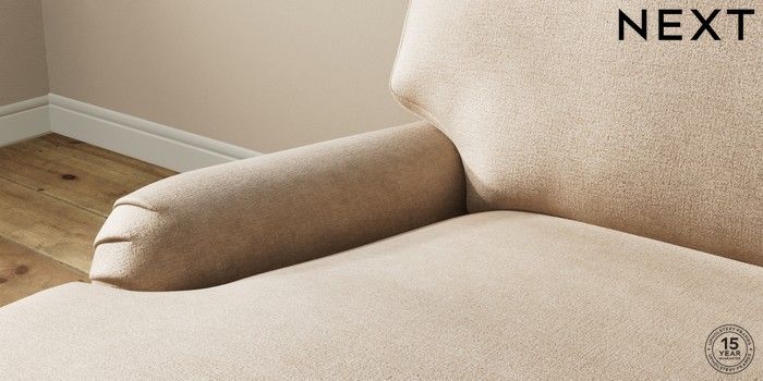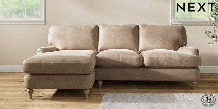 7.0.3 Buy Sadie Deep Relaxed Sit Medium Sofa Chaise - Left Hand Luxe Chenille Mid Camel Beige High Slim Turned - Light from the Next UK online shop Click here to use our accessible website